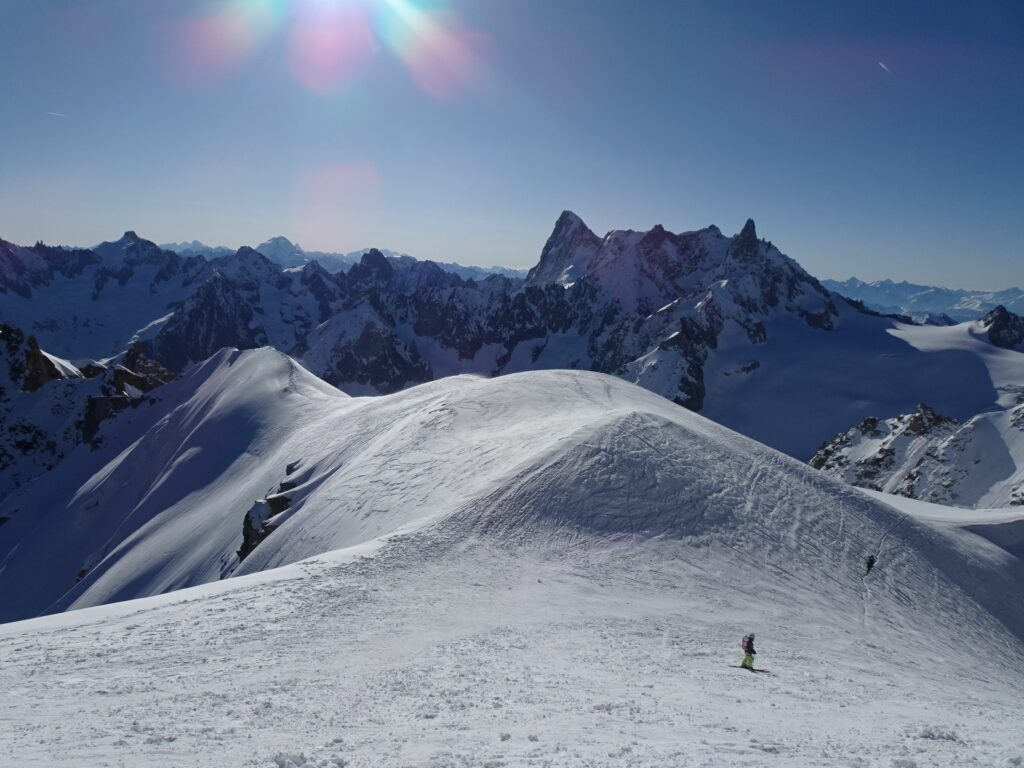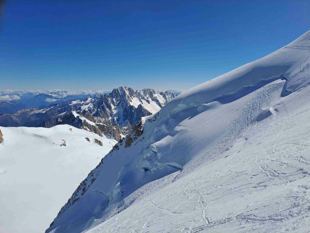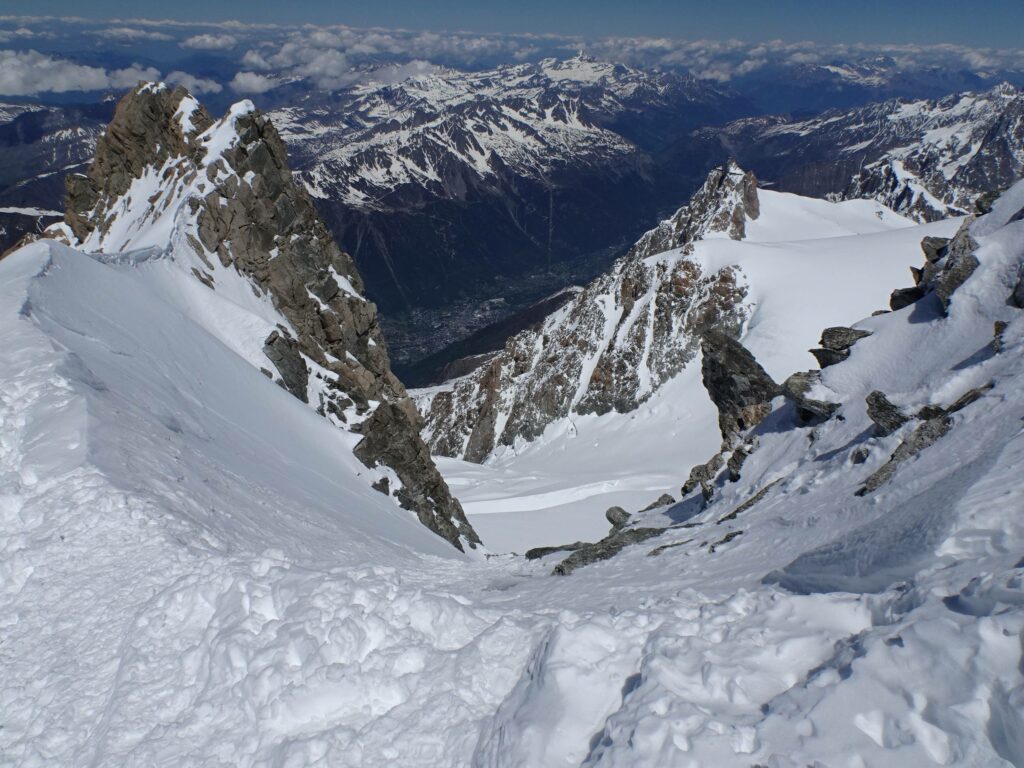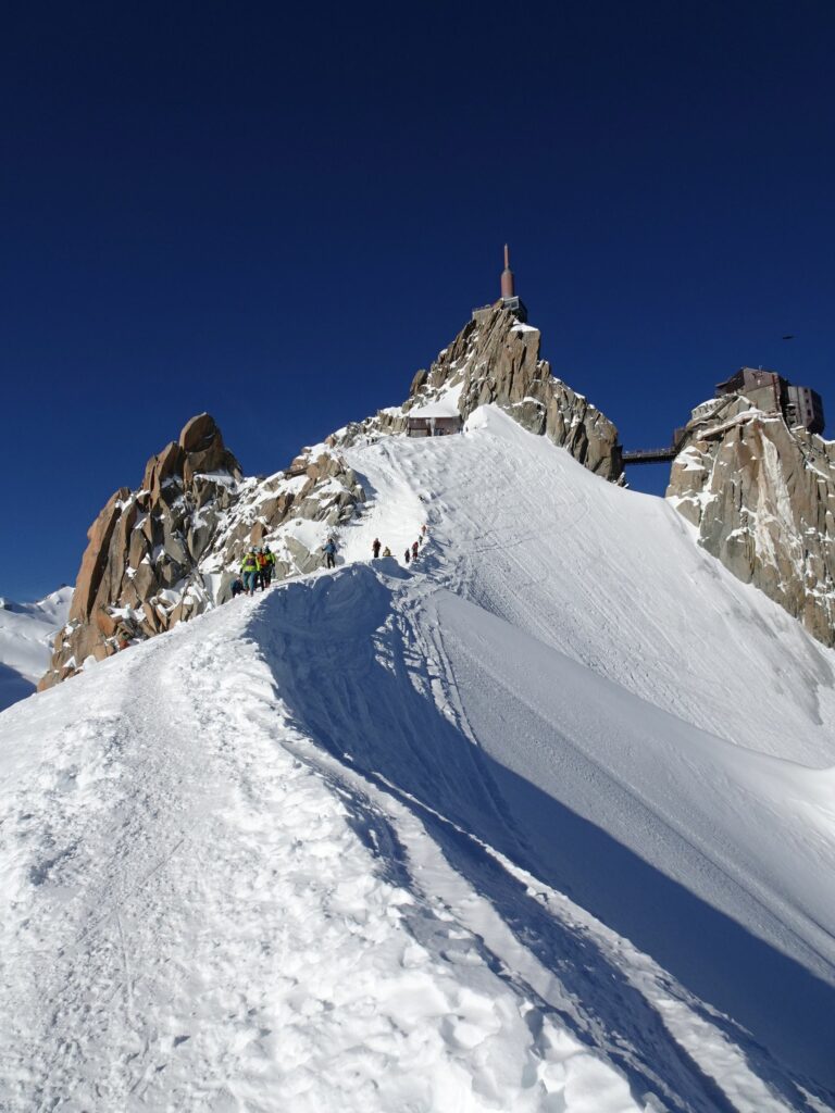 – Dimanche 18 : montée via le téléphérique de l’aiguille du Midi au refuge des Cosmiques (3613m) pour y passer une partie de la nuit